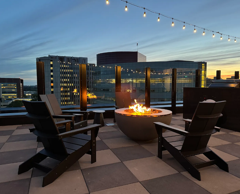 - Rooftop patio with BBQ area & fire bowls