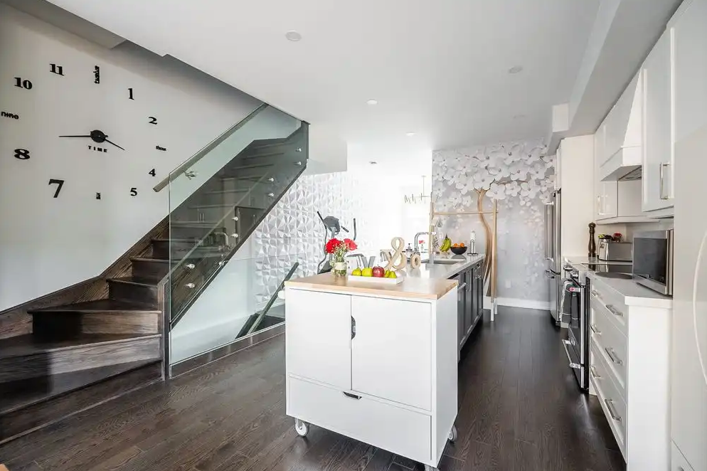 Experience the epitome of urban living with this exquisite 2,700 sq.ft. furnished detached home in York, Toronto. This 3-bedroom, 3.5-bathroom designer house offers stylish living across three floors with two outdoor spaces — a spacious balcony and a terrace with BBQ.